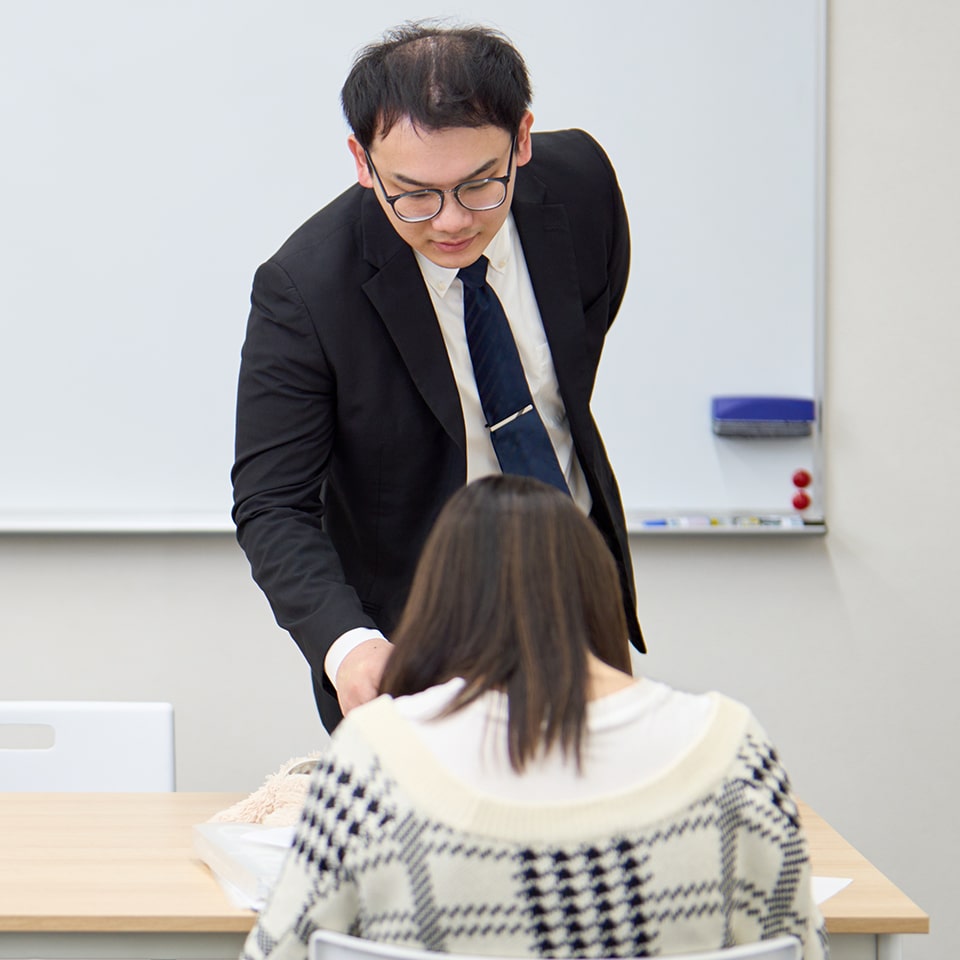 秋山塾の講師は、生徒に寄り添い安心感を与え、学習指導の専門家によるサポートを行っています。